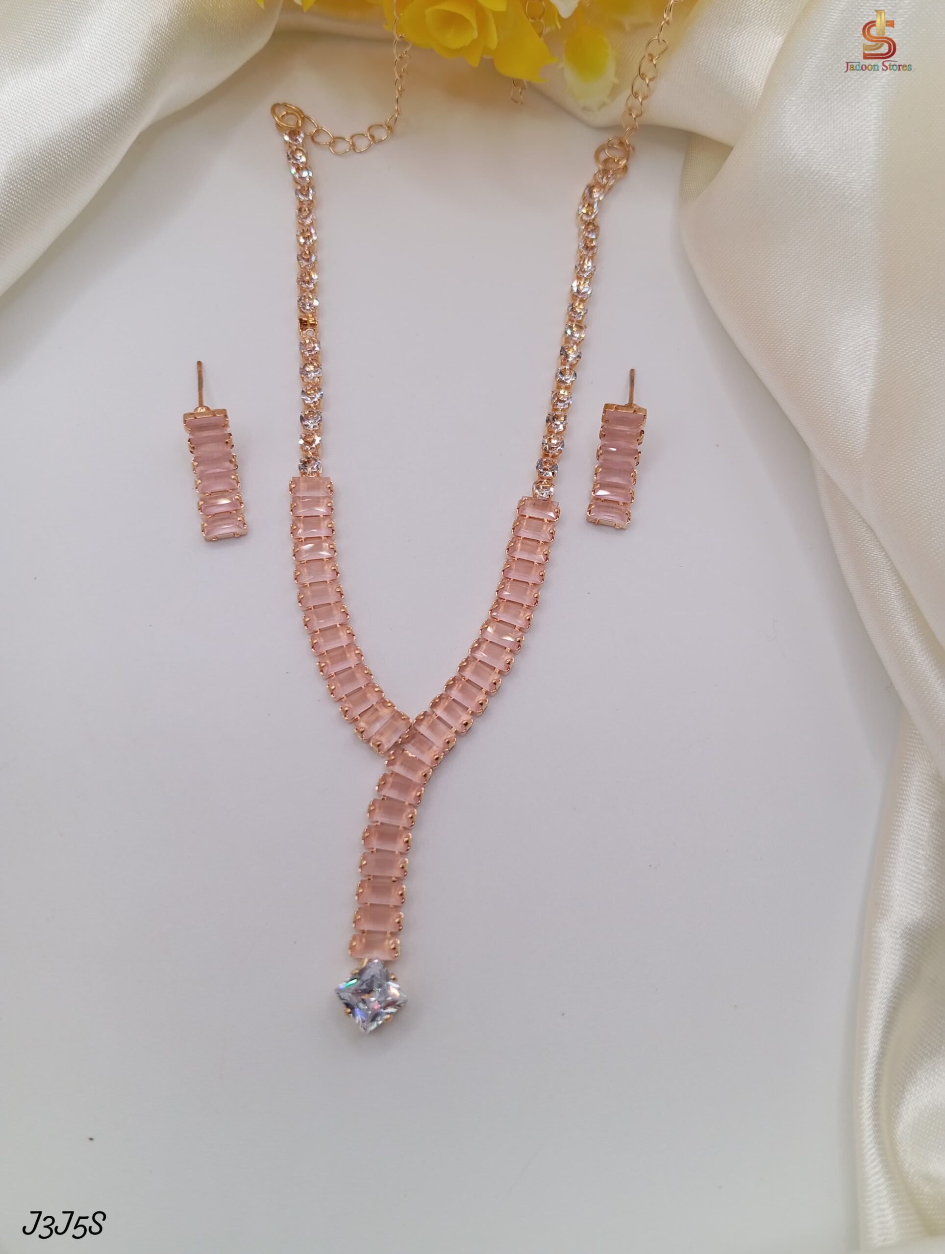 Be the first to review “Elegant Rose Gold Necklace Set with Pink Stones and Diamond Pendant”
